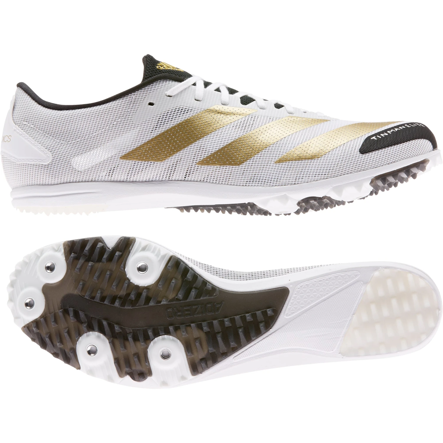 For your fastest race yet. These adidas running spikes were created with the Tinman Elite team for cross-country athletes. The lightweight mesh upper has an internal fit system, offering secure lockdown. The rubberized TPU spike plate provides great traction across multiple surfaces.<br> <br> This product is made with Primegreen, a series of high-performance recycled materials. 50% of the upper is recycled content.