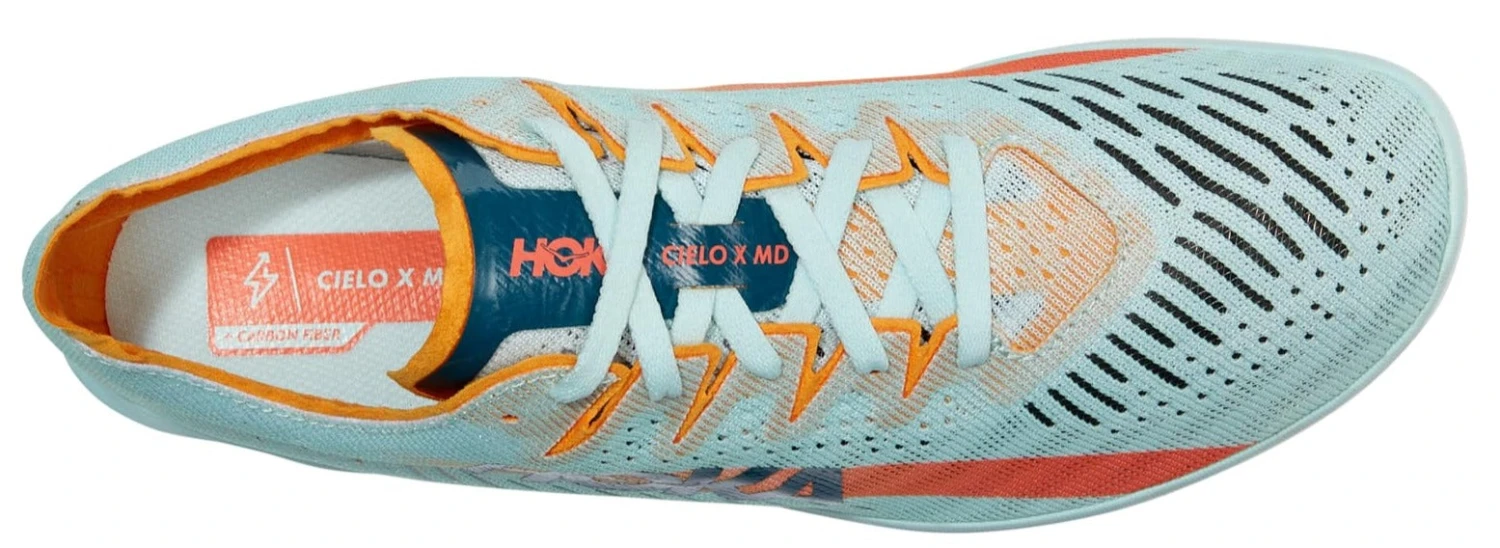 The Cielo X MD is the next generation of track spikes with a propulsive carbon fiber plate and designed in accordance with World Athletics’ guidelines. The Cielo X MD is geared towards middle distances (800m-3K) with Hoka’s lightest performance foam, this responsive race spike will deliver a snappy ride weighing in under 4.5 ounces.