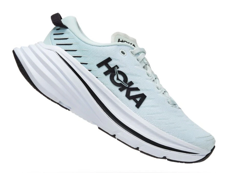 A maximally cushioned road shoe designed to go the distance, the game-changing Bondi X is spring-loaded with our propulsive carbon-fiber plate. The original Bondi cushioning and lines are here, providing the soft, balanced ride the franchise is known for. The Bondi X fine-tunes the geometry with an extended rocker for greater acceleration, while also delivering smoother toe-offs, thanks to the carbon-fiber plate. HOKA’s extended crash pad acts like a veritable marshmallow, employing the softest foam in our arsenal to date. Paired with a progressive upper with embroidered TPU yarn, the Bondi X will get you there, and then some.