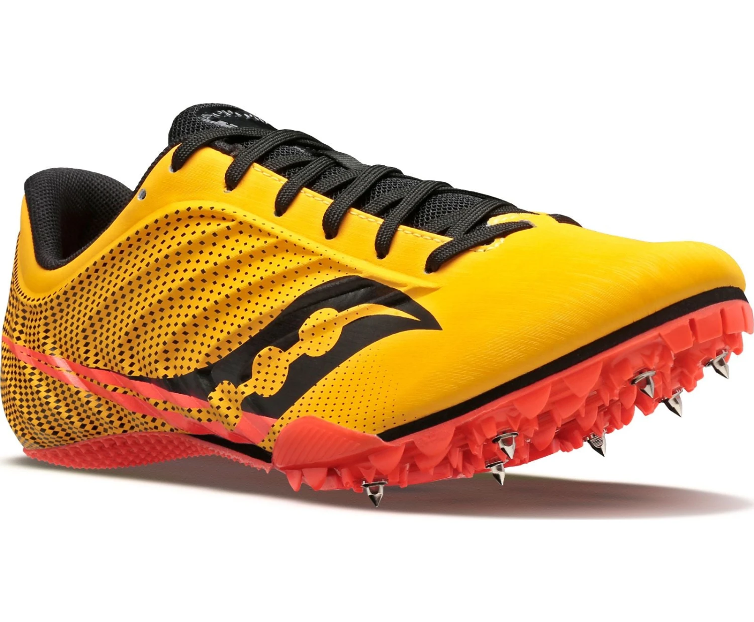 The new Saucony Spitfire is sleek, fast, and unique. With a styling like no other, the Spitfire is ready to do some damage. With a 7 pin spike plate, you will surely be able to get great traction and speed. The synthetic upper and molded quarter cage will provide a secure fit so you can have a smooth quick race.