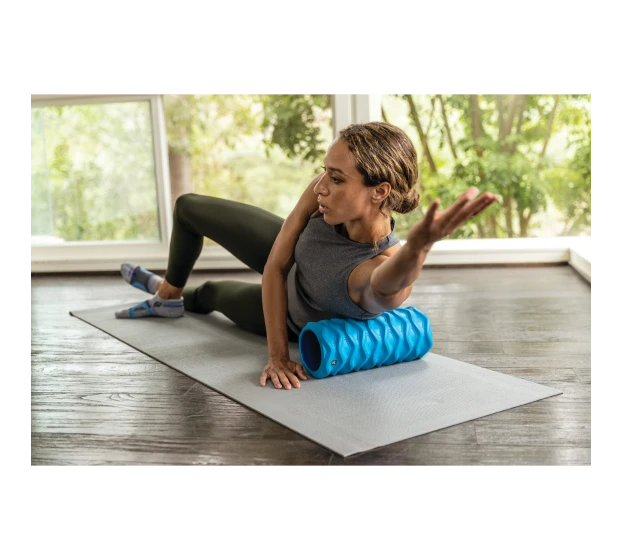 - Textured foam roller with squeeze and stretch design shears muscles to promote range of motion and glide.